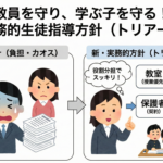 - 新・実務的生徒指導方針文部科学省の『生徒指導提要(改訂版)』は、非常に網羅的で理念としては立派ですが、「スーパーマンのような教員」を前提としており、現場の疲弊した状況やリアルな学級崩壊の現場には即応しにくい側面があります。 「誰でも実施可能」 […]